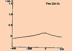 C型:峰值在-100mmdaPa之前,高度在0.3~1.6mL之間,多見于咽鼓管功能障礙。