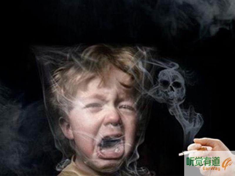 父母有吸煙習慣,孩子長期暴露在二手煙的環境里,患急性中耳炎、中耳積液、鼓膜張力等疾病的風險,比父母不吸煙兒童高出1.5倍。由于這一因素影響,導致每年大量兒童就醫,有些兒童處理不當則對寶寶聽力造成了不可逆轉的傷害。