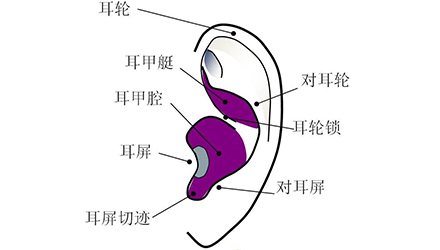 當佩戴耳模后,耳模會占據(jù)外耳的一些標志性部位(如下圖2所見)。