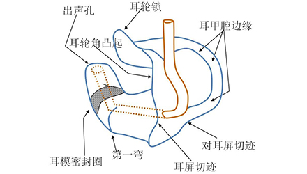 方法二是直接制作未占據(jù)整個外耳部分的耳模(如圖b中紫色部分所見)。