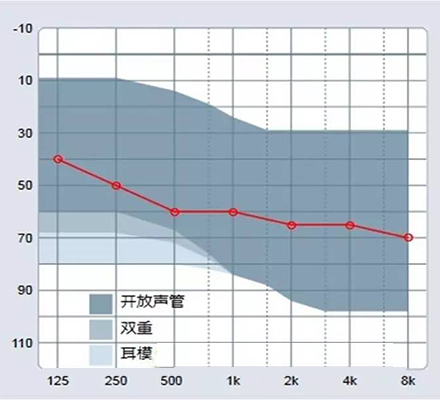 <span style="font-size:16px;"> 選擇助聽器時聽力損失者首先考慮的是“聽得清不清楚”——這就涉及到選擇何種放大線路,是決定型號的主要因素;其次考慮“美觀嗎?舒服嗎?”——這就涉及到外觀選擇,是決定型號的次要因素。</span></p><p><span style="font-size:16px;"> 但聽力損失者的喜好不一定符合聽力需求,驗配師還需要運用專業的聽力學知識和豐富的經驗分析“功率夠不夠?余量有多少?是否有禁忌癥?”以判斷選擇的型號是否符合聽力損失者的聽力狀況,幫助他們選擇。</span></p><p><span style="font-size:16px;"> 一般情況下,驗配師都會推薦比聽力損失曲線多出約10-20分貝余地的助聽器型號給聽力損失患者。比如,聽力損失為90分貝,則應推薦100-110分貝的助聽器型號以防止一旦聽力損失患者聽力下降后,助聽器無多余增益可調的情況出現。</span></p><p><span style="font-size:16px;"> 但受到聽力損失患者對助聽器外觀的限制,往往不能達到這個理想狀態,有可能只能選擇95分貝,甚至是90分貝功率的助聽器。</span></p><p><span style="font-size:16px;"> 在聽力曲線接近“參考驗配范圍”甚至略微超出的情況下,驗配師選擇助聽器功率時就會猶豫:聽力曲線超出驗配范圍一點行不行呢?雙耳驗配是否可以超出多一點?把試聽的大功率耳背機調小一些能否代表小功率定制機的效果?</span></p><p><span style="font-size:16px;"> 為了解釋這個問題,需要理解最大輸出能力(飽和聲壓級)和最大放大能力(滿檔聲增益)這2個判斷助聽器大小標準的意義。</span></p><p><span style="font-size:16px;"> 測量助聽器用的是dB SPL(Sound Pressure Level聲壓級)單位,是聲音真實的強度級別,最小是0。聽力圖是以dB HL(Hearing Level聽力級)為單位的,聽力級選用18-25歲的正常聽力成人進行測聽,將這些人在各個頻率處聽到的最小聲壓級定為0 dB HL,負數代表聽力比一般人好。dB HL和dB SPL之間可以進行轉換,各頻率差值不同:</span></p><p><span style="font-size:16px;"> </span></p><center><span style="font-size:16px;"><img alt="" src="/upfiles/201811070140306681.png" width="440" /></span></center><p></p><p><span style="font-size:16px;"> 以下圖所示的平均聽力損失62.5dB HL為例,白色代表能聽到的范圍,灰色代表聽不到的范圍。</span></p><p><span style="font-size:16px;"> </span></p><center><span style="font-size:16px;"><img alt="" src="/upfiles/2018110701403495.png" width="440" /></span></center><p></p><p><span style="font-size:16px;"> 價格單中矩陣119/60助聽器的參考驗配范圍一般寫100dB HL左右,但從下圖驗配范圍陰影看1000Hz處陰影只到85dB HL,用戶使用這款機器究竟能聽到什么范圍的聲音呢?</span></p><p><span style="font-size:16px;"> </span></p><center><span style="font-size:16px;"><img alt="" src="/upfiles/201811070140398624.png" width="440" /></span></center><p></p><p><span style="font-size:16px;"> 在軟件輸出圖中,因輸出圖的單位是dB SPL,聽力圖的單位是dBHL,通過上文提到的單位間轉換,所以輸出圖中代表聽力圖的曲線會有變化。圖中白色部分是助聽器的輸出,以及用戶也能聽到的范圍。飽和聲壓級和滿檔聲增益是曲線,矩陣“119/60”測量的是1.6kHz處的數值,接下來我們來分析下圖中紫色方框內的范圍。</span></p><p><span style="font-size:16px;"> </span></p><center><span style="font-size:16px;"><img alt="" src="/upfiles/201811070140438218.png" width="440" /></span></center><p></p><p><span style="font-size:16px;"> 藍點剛好是最大輸出和用戶不舒適閾的重合點,大約123dB SPL,紅點是聽閾大約76dB SPL,用戶可以聽到助聽器輸出的76-123 dB SPL之間的聲音。</span></p><p><span style="font-size:16px;"> 輸出-增益=輸入</span></p><p><span style="font-size:16px;"> 聽閾76dB SPL -滿檔聲增益60 dB =16dB SPL</span></p><p><span style="font-size:16px;"> 助聽器可以把一個最小16dB SPL的聲音放大到用戶聽閾,換句話說用戶在1.6kHz處能聽到16dB SPL至123dB SPL之間的聲音,當然這只是理論數據,實際輸出時還要考慮壓縮降噪等等對聲音的處理和過濾。</span></p><p><span style="font-size:16px;"> 同樣的方法計算一下矩陣113/40助聽器能聽到的范圍。最大輸出就算113 dB SPL,聽閾76dB SPL -滿檔聲增益40 dB =36dB SPL,因此,能聽到36dB SPL至113dB SPL之間的聲音。比矩陣為119/60的助聽器聽到的聲音少。</span></p><p><span style="font-size:16px;"> 現在再來分析前文提出的問題——“聽力曲線超出驗配范圍一點行不行呢?”,例如顧客1kHz處聽閾85dB HL(92dB SPL)。</span></p><p><span style="font-size:16px;"> </span></p><center><span style="font-size:16px;"><img alt="" src="/upfiles/201811070140513566.png" width="640" /></span></center><p></p><p><span style="font-size:16px;"> 不考慮壓縮、清晰度、舒適度等等因素僅僅粗略計算一下,使用113/40的助聽器能聽52-113 dB SPL,如果用戶覺得不滿意想換功率大一點的,那就要與用戶溝通“什么樣的聲音不滿意”:小聲聽得不清楚可以更換113/50的助聽器能聽42-113 dB SPL;要是覺得響聲不夠大就需要使用118/50的助聽器能聽42-118 dB SPL。</span></p><p><span style="font-size:16px;"> 如果聽力圖超出驗配范圍5分貝以內,可以通過耳道共振效應或雙耳驗配優勢補償,但如果超出較多,則會出現上述例子中說到的,助聽器佩戴者可能會覺得某些聲音聽得不滿意。</span></p><p><span style="font-size:16px;"> Q:把試聽的大功率耳背機增益調小能否代表小功率定制機的效果?</span></p><p><span style="font-size:16px;"> A:不可以。</span></p><p><span style="font-size:16px;"> 因為大功率耳背機的矩陣一般是136/75,把增益調小后最大輸出還