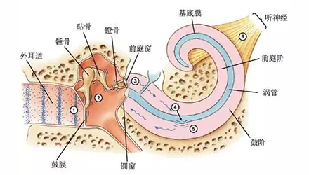 人體各器官功能取決于其生理結構,高頻陡降性聽力損失最為常見主要與耳部各個解剖部位有關。</p><p> 1、外耳的漏斗狀結構和彎曲“S”型耳道,此結構使得外界的聲學物理發生了變化。</p><p> </p><center><img alt="" src="/upfiles/201904030222181282.png" width="440" height="250" /></center><p></p><p> 如上圖所示,人類耳廓及耳道對不同頻率段的聲音增益變化可以看出:在頻率2kHz-4kHz范圍耳道對聲音增益最大。研究表明噪聲引起的聽力損失常常位于噪聲頻率之上的一倍頻率程處,工業噪聲位于低中頻范圍內相對恒定,外耳道自然共振峰為2kHz-4kHz,故最容易導致4kHz-6kHz頻率范圍內聽力損失。這也就是為什么噪聲性聽障起初聽力損失常常從4KHz左右開始,逐漸損害影響至更好頻率。</p><p> 2、耳蝸螺旋狀結構</p><p> </p><center><img alt="" src="/upfiles/201904030222256648.png" width="440" height="250" /></center><p></p><p> 聲音從外耳道經聽骨鏈傳至內耳前庭窗,懸浮在耳蝸內的基底膜剪切運動引起其上的毛細胞電位變化,傳至大腦皮層感受聲音。</p><p> 耳蝸結構類似蝸牛呈螺旋結構,約2.5圈-2.75圈。聲波在基底膜上的傳播方式,是按物理學中的行波原理進行的,亦即行波學說(travellingwavetheory)。基底膜的最大振幅部位與聲波的頻率有關,亦即每一種頻率的聲波在基底膜上不同位置有一相應的最大振幅部位:高頻聲引起的最大振幅部位在蝸底靠近前庭窗處,低頻最大振幅靠近蝸頂,中頻在中間部分發生共振。由此可知,聲音從高頻到低頻的傳播途徑均需底周基底膜的振動,即高頻段的基底膜相對容易疲勞。同時耳蝸底周基底膜毛細胞含有比頂端毛細胞更低的抗氧化酶,故氨基糖苷類抗生素(慶大霉素、卡那霉素、鏈霉素等)耳毒性藥物出現的聽力損失都為陡降型聽力曲線。</p><p> 3、聽神經音頻分布</p><p> </p><center><img alt="" src="/upfiles/201904030222303234.png" width="440" height="250" /></center><p></p><p> 聽神經分布與耳蝸基底膜螺旋結構一脈相承,感受低頻的神經位于中心,感受高頻的聽神經位于外周。外傷、缺血缺氧、皰疹病毒等理化環境的變化首先影響到高頻。</p><p> 更多詳情請登錄聽覺有道助聽器m.milwaukeetvs.com</p>" />